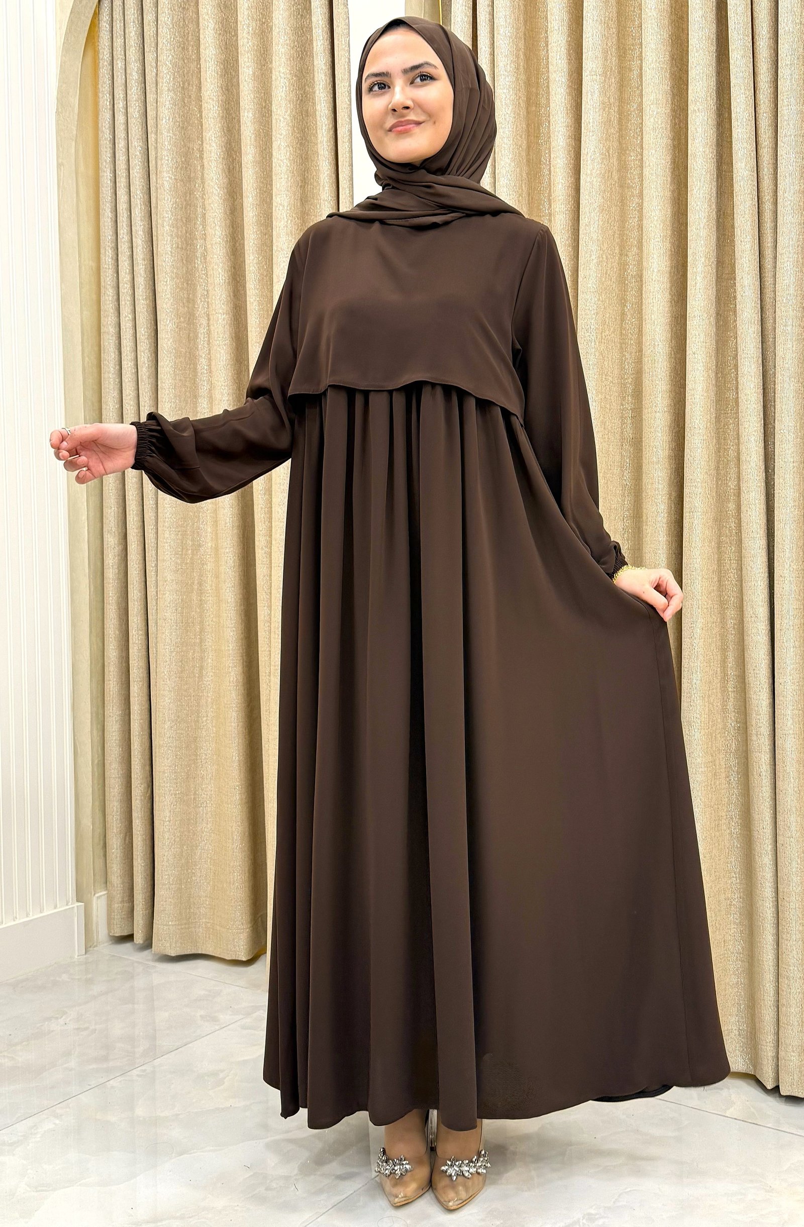 CEREN ELBİSE KAHVE RENGİ