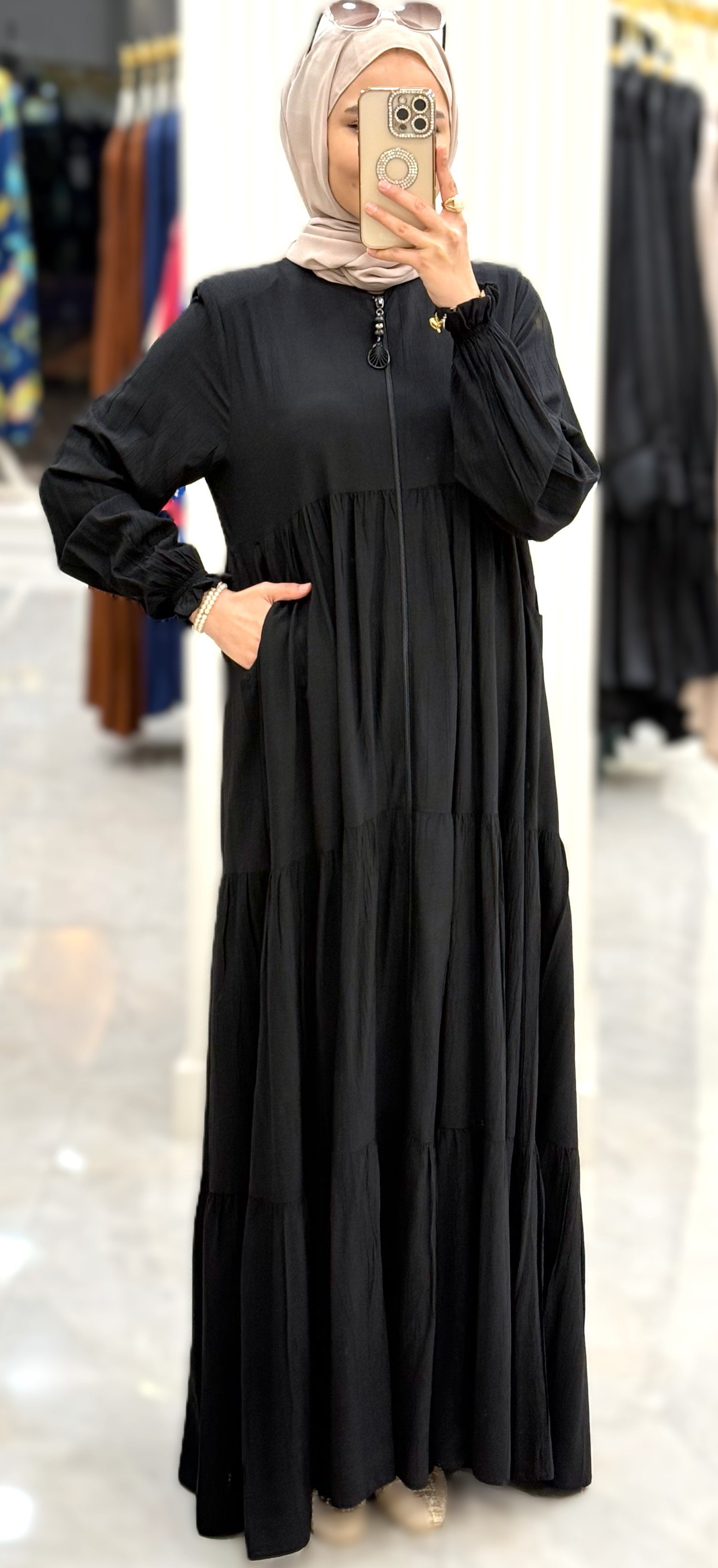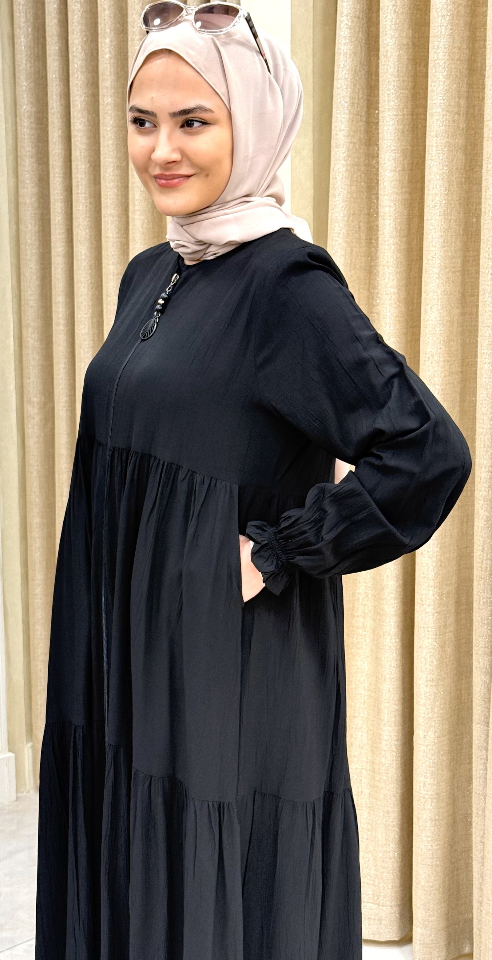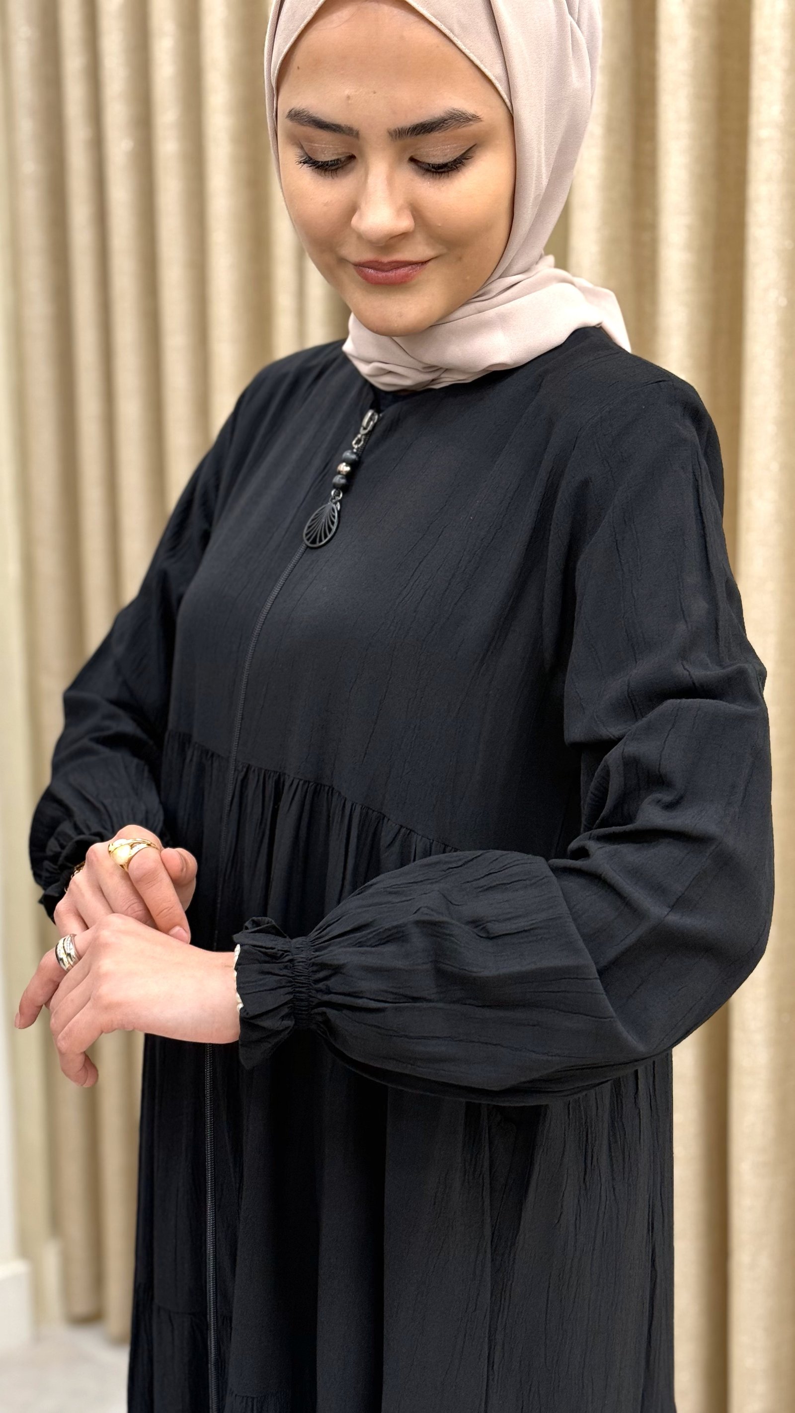 •  Design koleksiyonunun parçası olan bu ferace, trendleri takip eden moda anlayışına sahip kadınların beğenisine sunulmuştur.